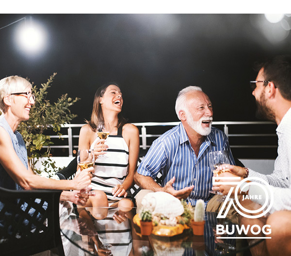Endlich wieder zusammen lachen! Das Leben zieht wieder ein. Wo könnte das schöner sein, als im eigenen Zuhause? Ob im Grünen, am Wasser oder in der City: Bei der BUWOG gibt es Ihre neue Eigentumswohnung. Provisionsfrei und mit 70 Jahren Erfahrung, wenn es um glückliches Wohnen geht.
