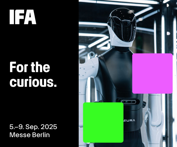 Heute schon wissen, worüber morgen alle reden? Auf der IFA entdecken Sie Roboter, KI, smarte Helfer und spannende Ideen – alles zum Anfassen und Ausprobieren. Mehr Zukunft geht nicht! Treffen Sie Ihre Lieblingsunternehmen, Tech-Expert*innen und Zukunftsbegeisterte in Berlin, 5.–9. September 2025 auf der Messe Berlin.