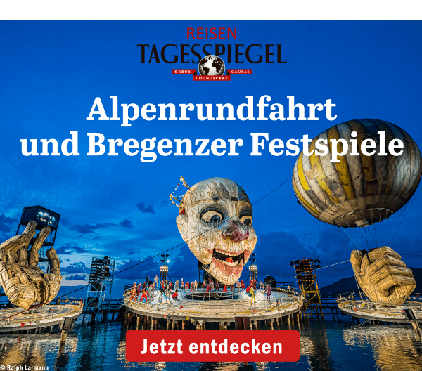 Lassen Sie sich von den Ländern der Alpenregion verzaubern. Stationen Ihrer Alpenrundfahrt sind Italien, die Schweiz, Liechtenstein und Österreich, mit Besuch der Bregenzer Festspiele 2021. Jetzt auf Tagesspiegel-Reisen.