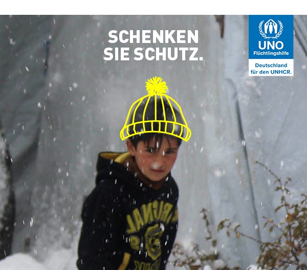 Die Temperaturen fallen nicht nur in Berlin. Der Winter kommt und Geflüchtete weltweit sind auf Ihre Spenden angewiesen, um sich vor Kälte und Witterung schützen zu können. Ihre Spende macht den Unterschied: Schenken Sie Schutz.
