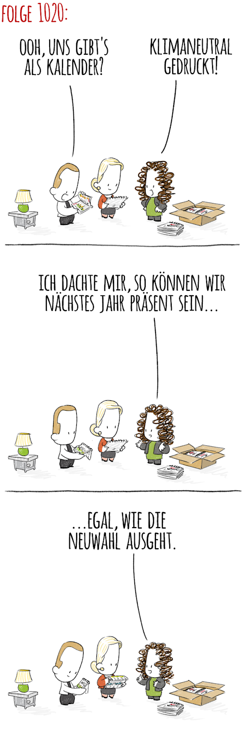 Hier kommen noch weitere brandaktuelle Nachrichten für Sie um die Ecke, nachdem wir vor kurzem die 1000. Folge „Berliner Schnuppen“ gefeiert haben, gibt es die kleinen, tagesaktuellen Comic-Strips über das Leben und die Politik der Stadt ab jetzt auch als Kalender für 2023. Mit feiner Ironie und großartigen Ideen zeichnet die Künstlerin Naomi Fearn hier liebevoll ein Bild Berlins, das uns selbst mit den gröbsten Unzulänglichkeiten und nachhaltigsten Unzuständigkeiten für einen heiteren Moment versöhnt. Die Schnuppen sind eben ganz nah dran am echten Leben … ach Quatsch: Sie sind das echte Leben: Mehr Spaß als hier hat Berlin selten gemacht! Zu diesem Anlass verlosen wir exklusiv hier in der Vollversion drei „Berliner Schnuppen“-Kalender. Verraten Sie uns welchen kleinen kreativen und knuffigen Charakter sind in den Berliner Schnuppen noch vermissen. Wer sich nicht unter den glücklichen Gewinnern befindet und dennoch mit dem Kalender ins Jahr 2023 starten möchte, wird in unserem Shop fündig.