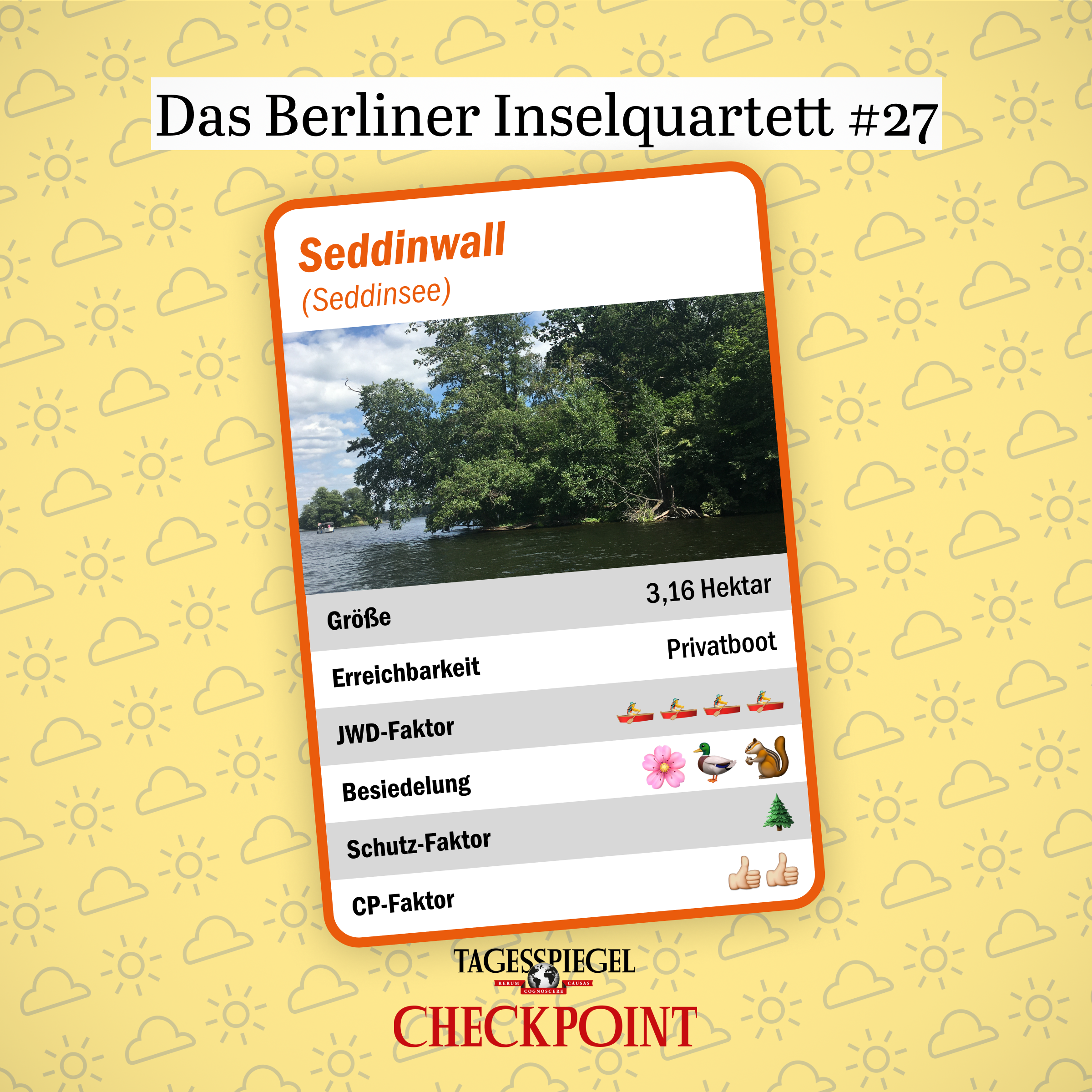 Team Checkpoint hat die Segel gehisst und alle Berliner Inseln besucht – es sind mehr als 50. An dieser Stelle und auf Instagram stellen wir Ihnen täglich eine davon vor. Und oben drauf gibt’s unser Inselquartett – zum Ausschneiden für lange Autofahrten in den Ferien und Sommer-Sehnsucht im Winter.