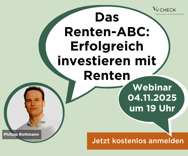 Rentenpapiere bieten eine Möglichkeit, Vermögen stabil und dennoch rentabel anzulegen. Sie wollen wissen, wie Sie mit einer klugen Rentenanlagestrategie finanzielle Sicherheit schaffen und Risiken vermeiden? Das erfahren Sie im kostenlosen Webinar. Kompakt, praxisnah, verständlich.
