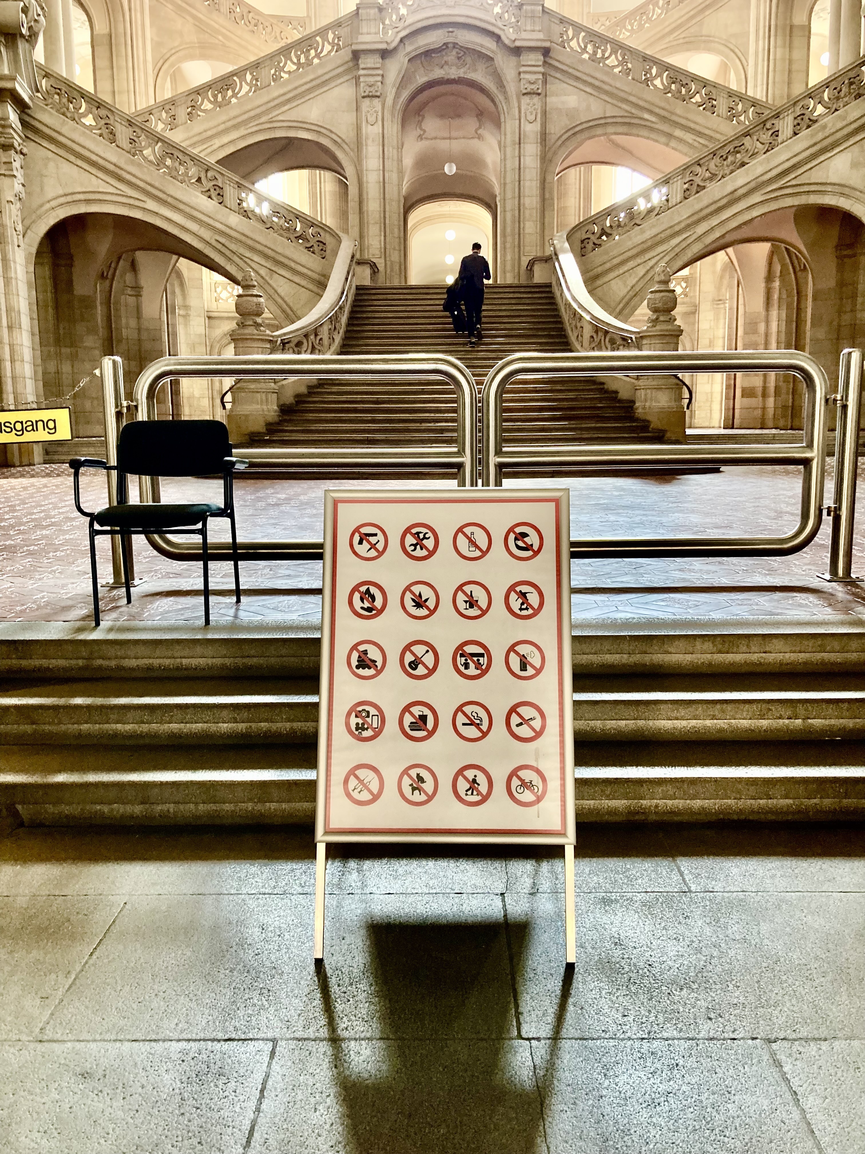 Schlechte Nachrichten, falls Sie wiedermal kiffenderweise auf Ihren Inlineskates und Gitarre auf dem Rücken ins Kriminalgericht Moabit rollen wollten: hier die aktuelle Verbotsliste! (Foto: Katja Fuechsel)