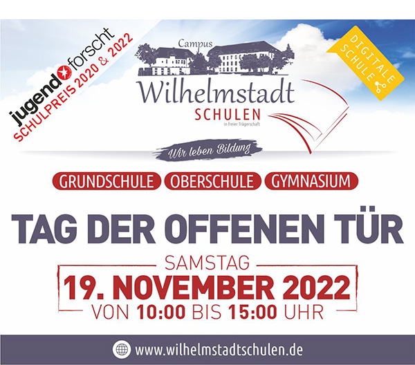 Am 19. November 2022 findet in der Zeit von 10-15 Uhr auf dem Campus Wilhelmstadtschulen der Tag der offenen Tür statt. Neben der Wilhelmstadt Grundschule öffnen sowohl die Wilhelmstadt Oberschule als auch das Wilhelmstadt Gymnasium ihre Pforten. Die anwesenden Schulleitungen, Lehrkräfte und engagierte SchülerInnen stehen für Gespräche zur Verfügung.