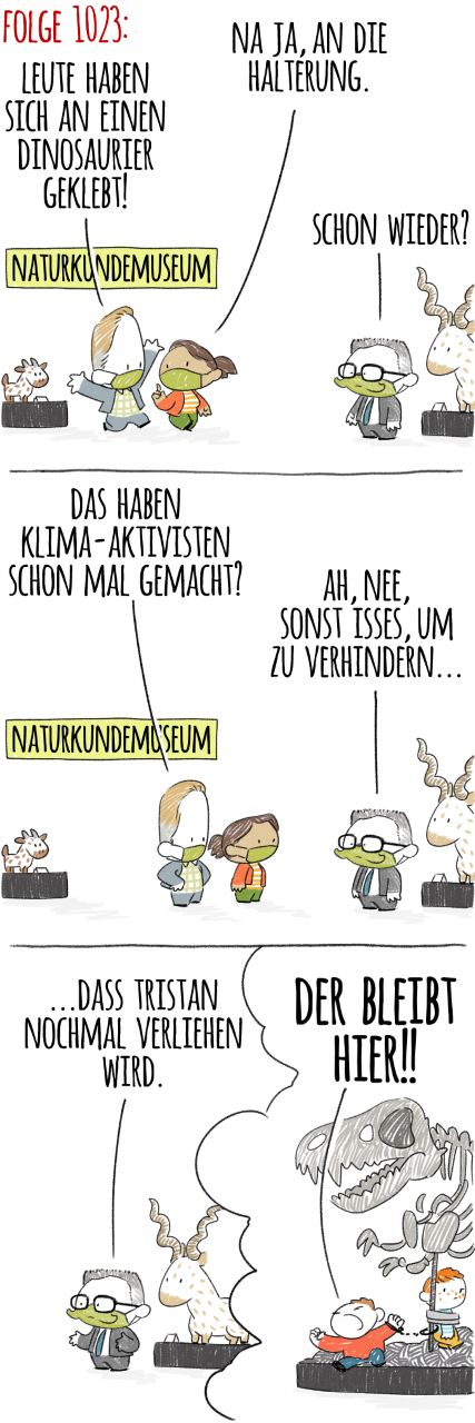 Wir verabschieden uns wie gewohnt mit Unfug: Vielleicht berlinert Meret Becker „Du hast wohl ‘nen Clown gefrühstückt?!“, spekuliert CP-Leser Andreas Ohlwein. Richtich jetippt! „Das kommt einem ‚sehr witzig!‘ oder ‚Du spinnst wohl!‘ nahe”, sagt die Schauspielerin (derzeit zu sehen in der 4. „Babylon Berlin”-Staffel) dem Tagesspiegel. „Ich find’s natürlich wegen des Clowns schee. Vor allem dachte ich lange Zeit, es hieße, ‚Du hast wohl MIT ’nem Clown gefrühstückt‘.” Becker habe sich den Frühstückraum eines alten Hotels vorgestellt, in dem ein Clown saß – inkognito, ohne Kostüm und Maske, im eleganten Anzug, zeitungslesend. „Allein die Tatsache, dass ich mit ihm im Raum äße, machte, dass ich ‚drollig‘ würde. Auch ein scheenes Wort aus dem alten Berlin!“