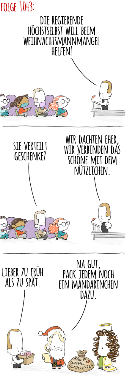 Ergo: Noch mehr Chaos! Nur fair, dass der Senat die Wahlhelfer:innen künftig mit 240 Euro Schmerzens- pardon, Erfrischungsgeld entlohnt. Wie sieht es bei denen eigentlich aus? Wir greifen zum Checkpoint-Telefon: Pankow? Volltreffer! Schon 6500 Helfende haben sich beim Amt gemeldet – 1500 mehr als 2021. Auch aus Charlottenburg schallt die frohe Botschaft, man habe jetzt schon mehr als genug. Neukölln verzeichnet sogar auffällig viele Helfer, die sich in diesem Jahr zum ersten Mal melden – wirtschaftliche Finesse oder weihnachtliches Erbarmen? Who cares! Hauptsache: Engelsgeduld.