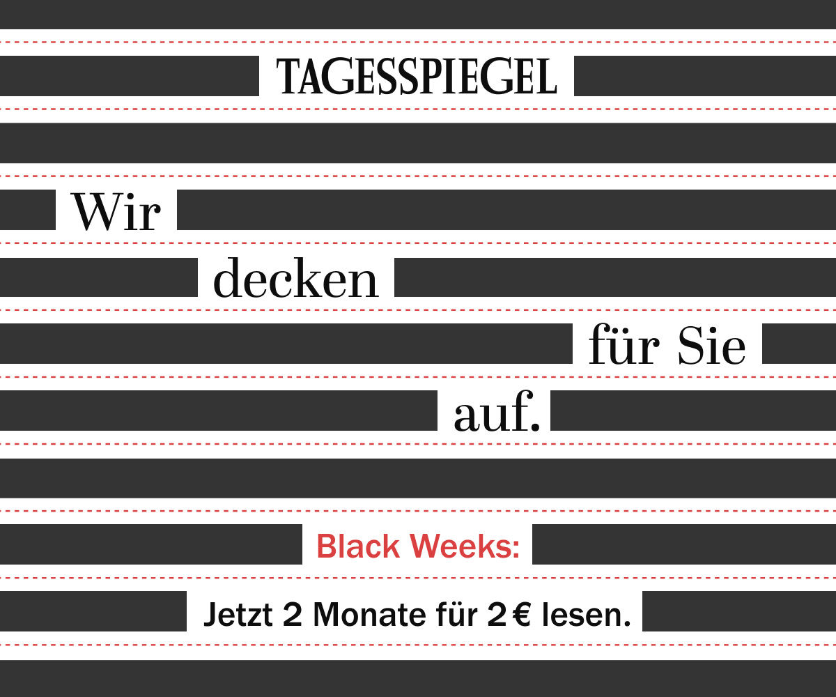 Wir liefern täglich verlässliche Nachrichten, klare Analysen und fundierte Recherchen – entdecken Sie den Tagesspiegel jetzt mit exklusiven Vorteilen: Testen Sie uns zwei Monate für 2 € oder lesen Sie gleich ein ganzes Jahr zum halben Preis. Finden Sie Orientierung in unübersichtlichen Zeiten – für Berlin, Deutschland und die Welt. Jetzt sichern