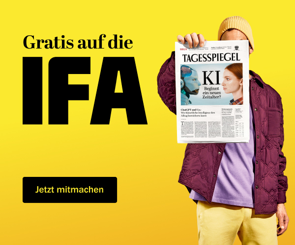 Mit dem Tagesspiegel kostenlos auf die IFA. In dieser Woche verlosen wir täglich 1000 Tagestickets für die IFA 2025 im Wert von jeweils 19,50 Euro. Abonnenten können direkt mitmachen – es wird täglich verlost bis 14 Uhr. Hier geht es zur Verlosung.