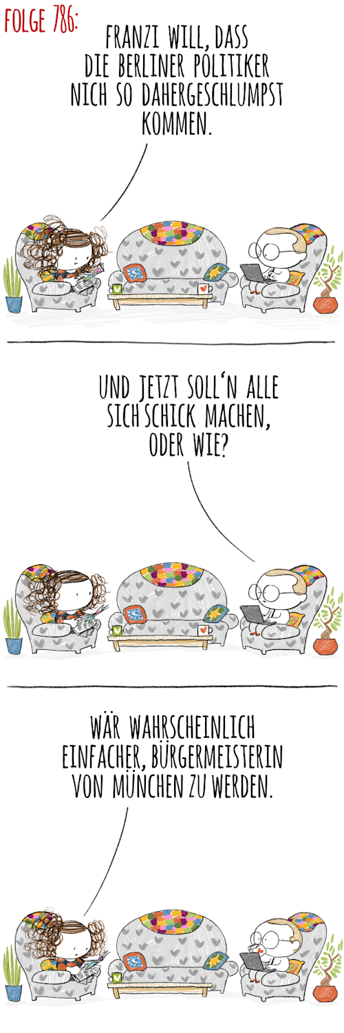 Da wir bald von Stilikone Olaf Scholz regiert werden, kann ohnehin nichts mehr schiefgehen. (Weitere Modetipps gibt’s im Comic, aber nur für stilbewusste Abonnentinnen.)