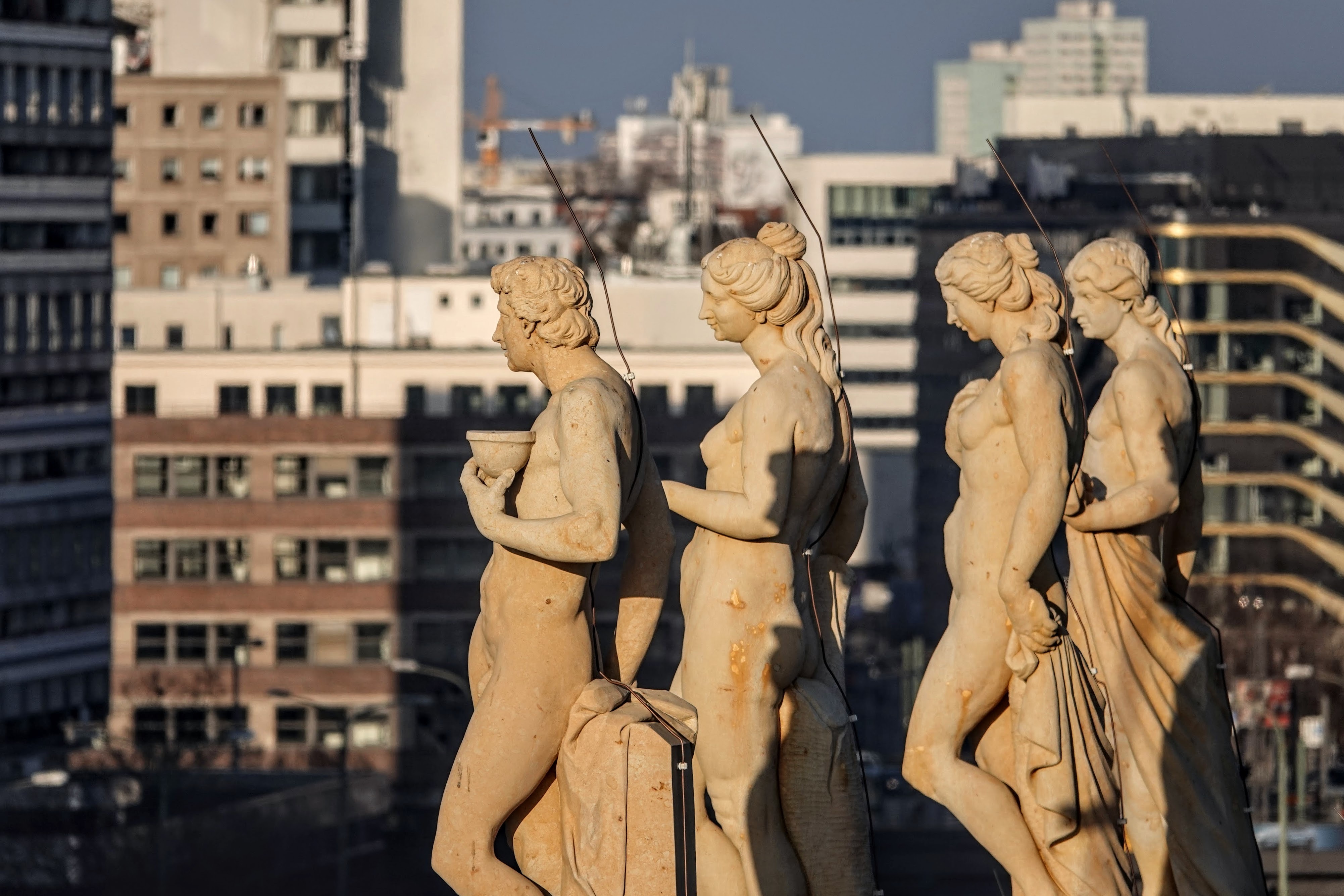 Schauen sie wohl wegen der modernen Architektur oder der ungewohnten Sonne leicht erstaunt? Diese Gruppe antiker Berlin-Beobachter fotografierte Checkpoint-Leser Rudolf Mengersen von der Dachterrasse des Stadtschlosses aus. Schicken Sie Ihre Schnappschüsse gern an checkpoint@tagesspiegel.de. Aktuellnehmen Sie an unserem Kiekste-Fotowettbewerb in Kooperation mit DASBILD.BERLIN teil.