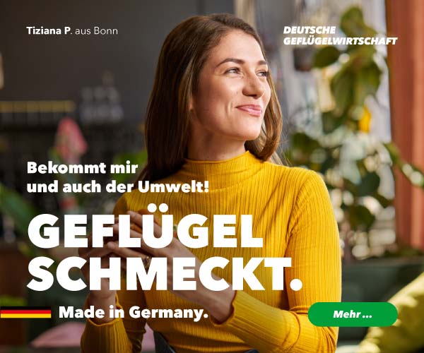 Geflügelfleisch wird in Deutschland nachhaltig und ressourceneffizient erzeugt – zur guten Futterverwertung kommen bei uns kurze Transportwege, effiziente Flächennutzung und ein optimierter Ressourceneinsatz der geflügelhaltenden Betriebe. Diese sorgen oft seit Generationen für gute Lebensmittel. Erfahren Sie mehr über Geflügel. Made in Germany.