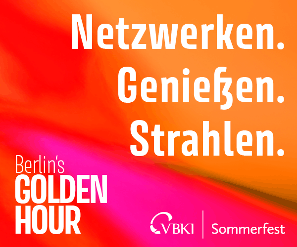 Das VBKI-Sommerfest 2025 – jetzt Tickets sichern! Freuen Sie sich auf das großes Get-together der Hauptstadtgesellschaft nach der Sommerpause, feiern Sie mit uns Berlin’s Golden Hour! Auf dem VBKI-Sommerfest 12. September kommen die Spitzen aus Wirtschaft, Politik & Kultur zusammen – Kulinarik, Netzwerken & Spätsommerflair inklusive. Höhepunkt: Die Verleihung des VBKI-Preises BERLINER GALERIEN. Sichern Sie sich jetzt Ihr Ticket hier