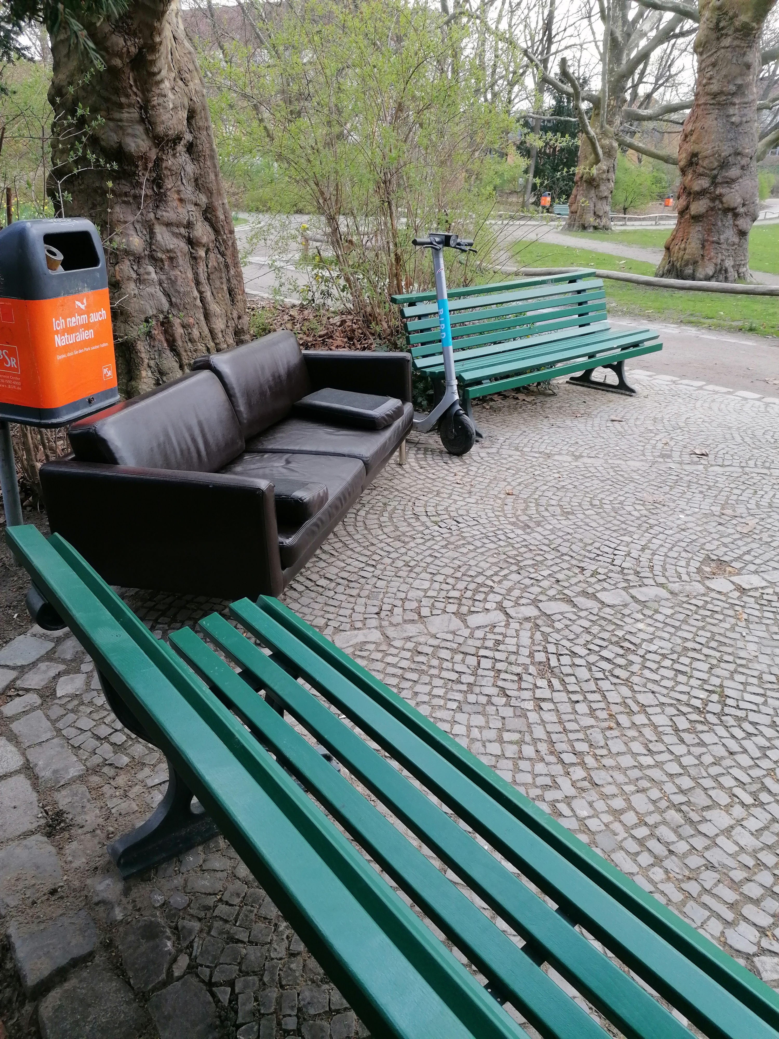 So lässt sich das Frühlingserwachen stilvoll beobachten: Im Volkspark Wilmersdorf geht der Trend zum Freiluftwohnzimmer, nur echt mit Ledersofa. Vielen Dank an Tagesspiegel-Leser Jan Czybullka! Ihre Berlinmomente erreichen uns per checkpoint@tagesspiegel.de.