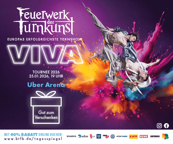 Europas erfolgreichste Turnshow – das „Feuerwerk der Turnkunst“ – kommt nach Berlin! VIVA verspricht, ein wahres Akrobatikfest des Lebens zu werden. Jede Darbietung trägt die Botschaft: Das Leben ist ein Geschenk – lasst es uns auspacken und genießen! Mit dabei: die Top-Turner Lukas Dauser und Andreas Toba