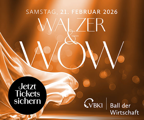 Weihnachten steht vor der Tür – und Sie suchen ein besonderes Geschenk? Wie wäre es mit einem Abend voller Glanz und Stil? Der Ball der Wirtschaft des VBKI am 21.2.2026 vereint über 2000 Unternehmerinnen, Unternehmer, kreative Köpfe und Entscheider der Stadt. Verschenken Sie ein unvergessliches Erlebnis - alle Infos hier.