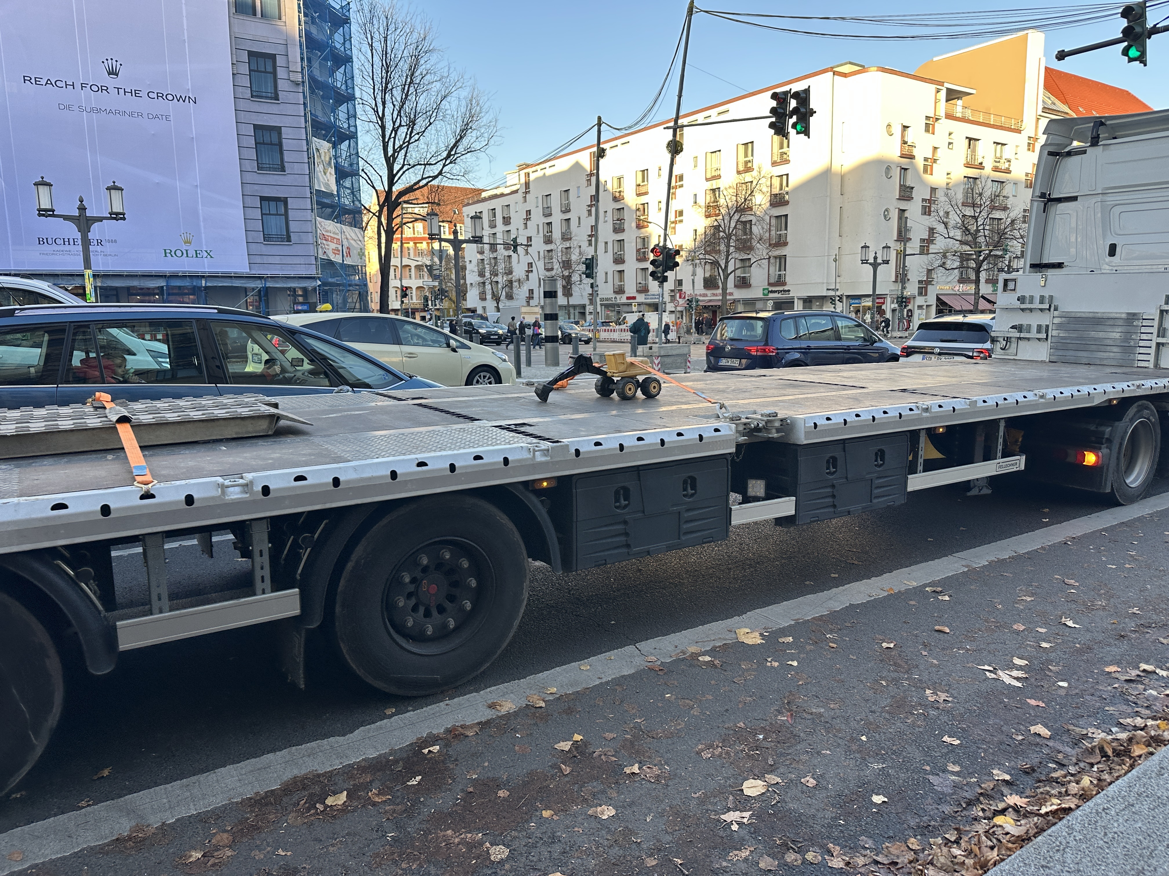 So, und was kommt jedes Jahr vor Silvester? Richtig: der Weihnachtsbaum für den Markt an der Gedächtniskirche (wenn alles glattgeht –