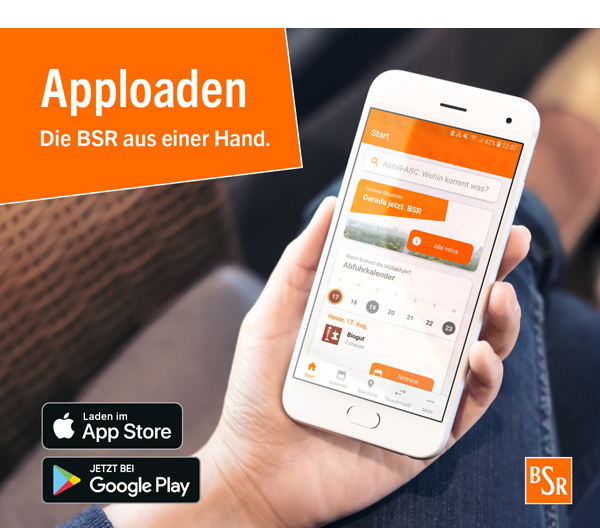 Mit der kostenlosen BSR-App auf dem Smartphone wissen Sie immer, wo der nächste Glascontainer steht. Darüber hinaus finden Sie hier alle Recyclinghöfe, einen adressgenauen Abfall-Abholkalender mit Erinnerungsfunktion, einen Tausch- und Verschenkmarkt für Gebrauchtwaren und einiges mehr. Jetzt App laden!