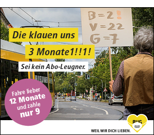 Wieso hast du kein Abo? Also wir stellen einfach nur Fragen. Mit dem monatlich kündbaren Abo der BVG sparst du nämlich Kohle und kannst am Wochenende sowie ab 20 Uhr Freunde und Familie mitnehmen. Außerdem ist es übertragbar. Abo-Vorteile leugnen ist zwecklos! Mehr Infos unter BVG.de/Abo