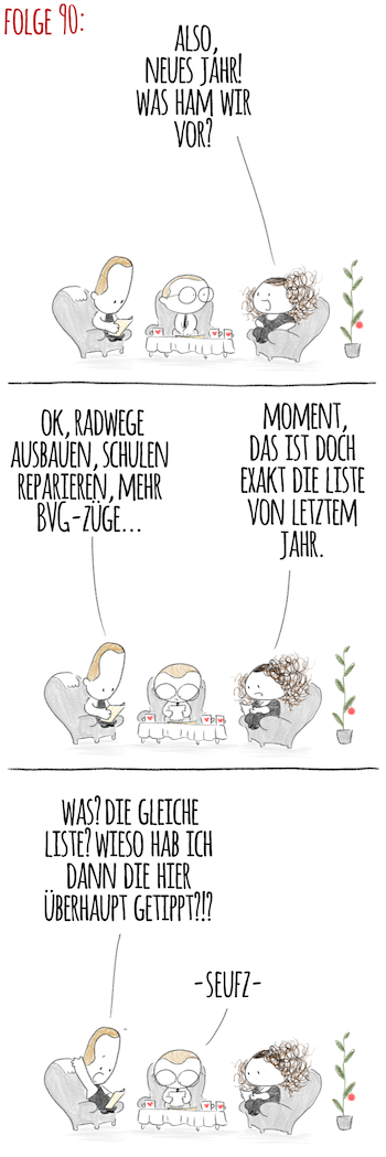 Können wir alles unterschreiben. Apropos schneller: Unseren Lieblingsflughafen erwähnt Michael Müller vorsichtshalber nicht, aber so hat er immerhin schon mal exklusiven Stoff für seine Rede im nächsten Jahr. Zum regierungsamtlichen Status quo Januar 2019: Ja, die Baustellen nerven, aber sie beweisen, dass kräftig investiert wird; ja, Berlin geht es gut, doch noch profitieren nicht alle vom Aufschwung, weshalb es Entlastung gibt beim Grundschulessen und den Schülertickets. Auch sonst ist einiges auf den Weg gebracht. Ergo: „Die Richtung stimmt“, und das schon länger – auch in früheren Jahren sah Müller seine Stadt jeweils zum neuen Jahr „auf dem richtigen Weg“. Es geht also voran, aber, und auch das ist bei Senatsansprachen in Berlin Neujahrstradition, „nicht von heute auf morgen“ und „nicht über Nacht“, denn: „Nicht alles wird sich von heute auf morgen verbessern.“ Logo.