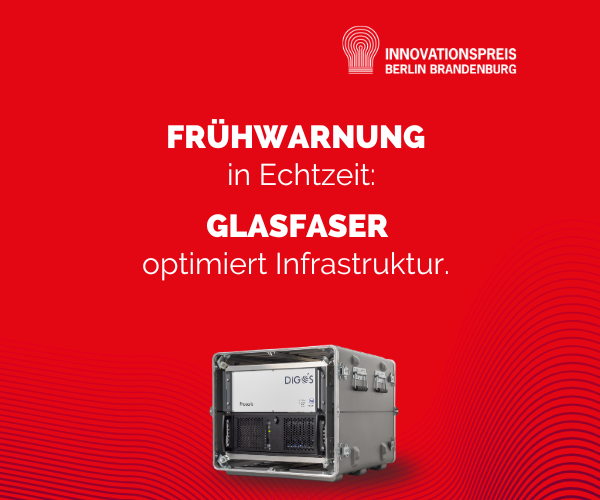 Mit standardisierten Glasfasern als Sensoren macht DiGOS Veränderungen im Boden oder Infrastrukturen in Echtzeit sichtbar. Die patentierte Technologie wird aus der Forschung in Berlin und Brandenburg weiterentwickelt und steht vor dem Markteintritt. Ziel: resiliente Infrastrukturen, Frühwarnung und nachhaltige Planung.