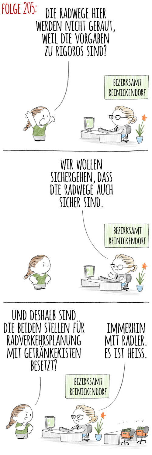 Nachtrag (II) zur Meldung „Kuriose Bremsbügel auf dem Fahrradweg, für die niemand zuständig ist (wer auch sonst)“, (CP von gestern) – das Technikmuseum teilt mit: Die unnützen Dinger direkt neben einem Umgehungs-„Rampelpfad“ werden wieder abgebaut. CP-Tipp: Können gleich als Exponate für die Berlin-Ausstellung übernommen werden.