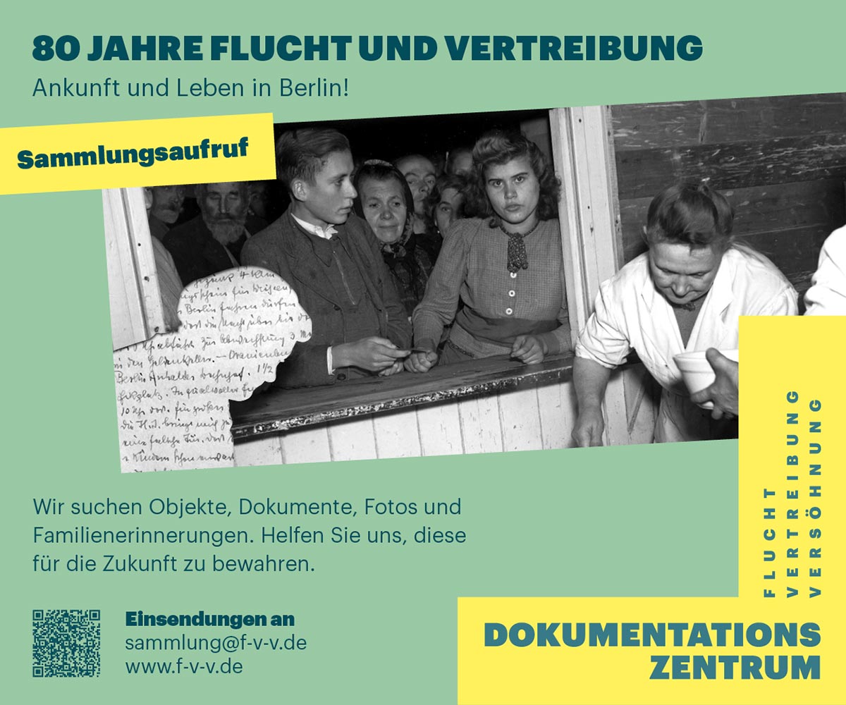 Wir suchen Erinnerungsstücke an Flucht und Vertreibung! Unser Aufruf richtet sich an Zeitzeuginnen, Zeitzeugen und ihre Nachfahren aus den ehemaligen deutschen Ostgebieten oder Siedlungsgebieten in Osteuropa, die nach dem Zweiten Weltkrieg in Berlin und Umland eine neue Bleibe fanden. Mehr