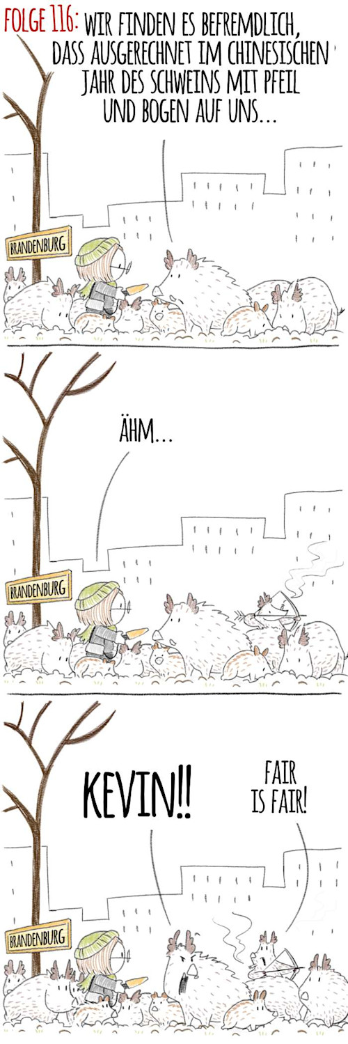 Und hier eine neue Folge der „Tribute von Stahnsdorf“ (CP von gestern): Mit dem Schlachtruf „Schwein, raus mit Dir!“ vertrieb Hannelore Heinrich ein randalierendes Wildschwein aus ihrem Friseursalon – ohne Pfeil und Bogen, nur mit einem Tischchen bewaffnet. Unseren Kollegen von den PNN hat sie erzählt, wie der Überfall ablief.