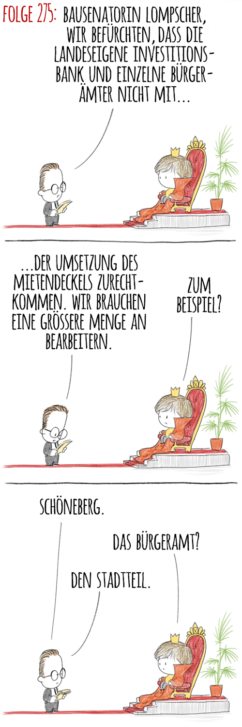 Neues von Florian „Feuerstein“ Schmidt – weil der „Stonelet“-Stadtrat eine Anfrage zur Zahl der Baugenehmigungen in F’hain-Xberg ignorierte (DS 18/20432) und MdA Sven Kohlmeier deshalb mit einer Klage droht, machte der Senat jetzt „von seinen Rechten nach AZG Gebrauch“ (Staatssekretärin Regula Lüscher). AZG? Ach so, das „Allgemeine Zuständigkeitsgesetz“ (§ 1: „Niemand ist zuständig“). Ging dann trotzdem – hier die noch unveröffentlichte Antwort: