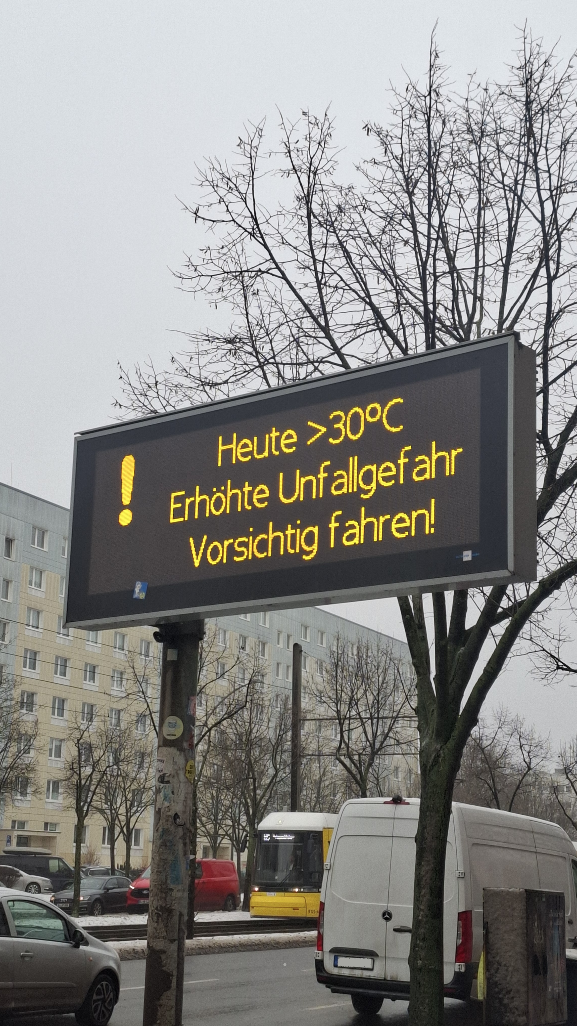 Achtung: Ganz Berlin friert – doch in Friedrichshain herrscht heute Hochsommer mit über 30 Grad. Erhöhte Unfallgefahr nicht ausgeschlossen. Gesehen und festgehalten von Checkpoint-Leserin Charlotte Ziedler an der Ecke Landsberger Allee/Petersburger Straße. Vielen Dank! Schicken auch Sie uns Ihre schönsten, kuriosesten und überraschendsten Berlin-Momente an checkpoint@tagesspiegel.deund nehmen an unseremKiekste-Fotowettbewerbin Kooperation mit DASBILD.BERLINteil.