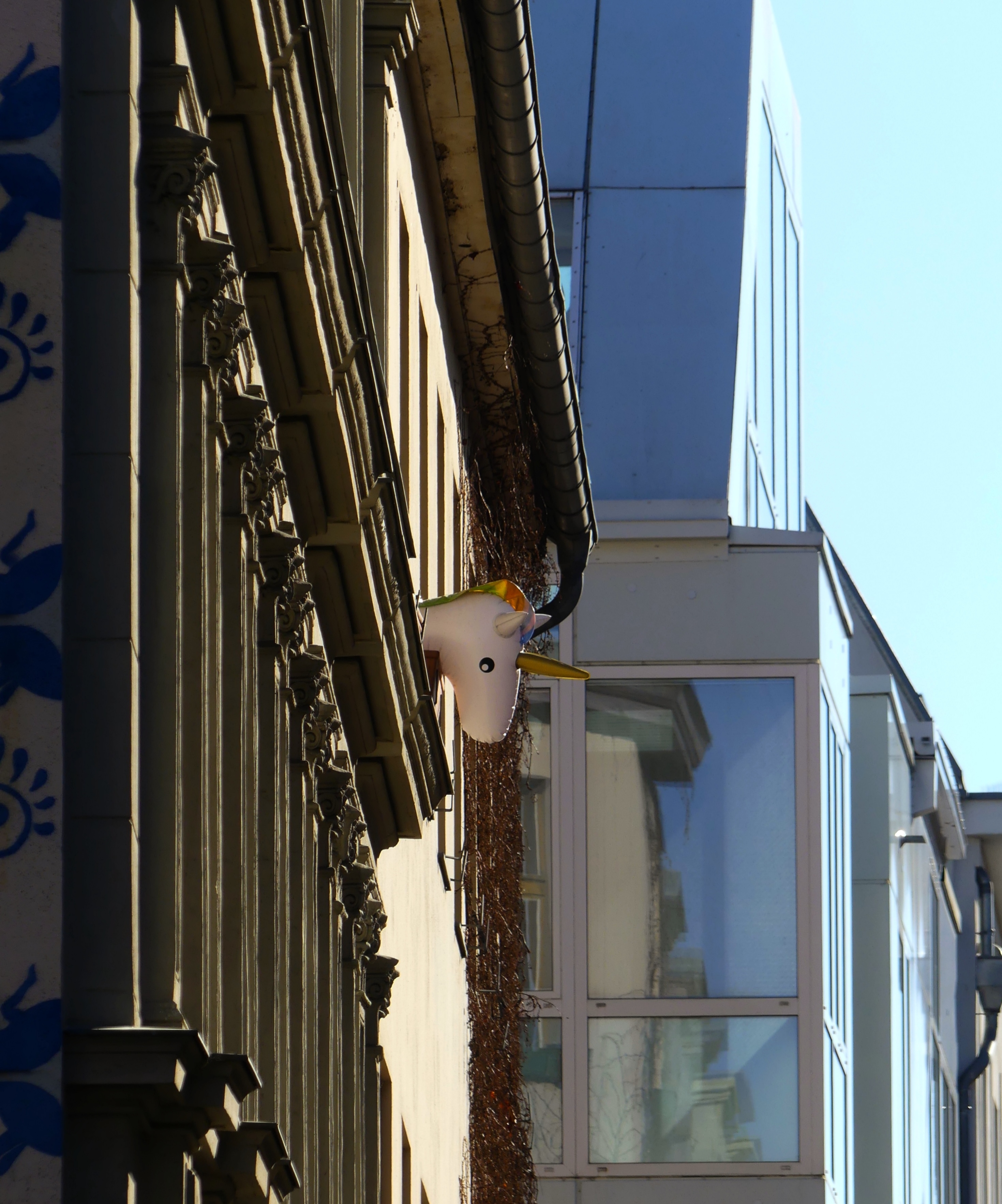 „Always look on the bright side of life“, scheint sich dieses Einhorn in der Gormannstraße in Mitte gedacht zu haben – und schaut fröhlich aus dem Fenster. Entdeckt und fotografiert von Checkpoint-Leserin Sabine Skott. Danke dafür! Schicken auch Sie uns Ihre schönsten, kuriosesten und überraschendsten Berlin-Momente an checkpoint@tagesspiegel.de und nehmen an unserem Kiekste-Fotowettbewerb in Kooperation mit DASBILD.BERLIN teil.