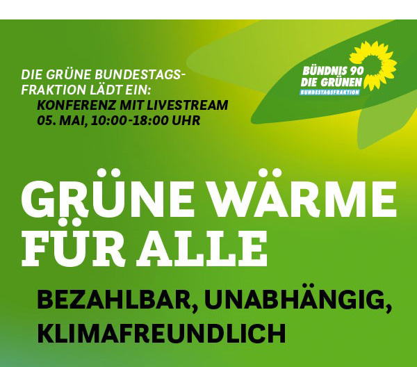 Klimaneutrale, bezahlbare Wärme durch erneuerbare Energien und technische Lösungen ist möglich. Verbindliche Vorgaben und Anreize geben Impulse zur Realisierung. Wie setzen wir die Wärmewende gemeinsam effizient um? Dies und mehr diskutieren wir mit Ihnen und anderen Expert*innen wie dem Bundesminister für Wirtschaft und Klimaschutz