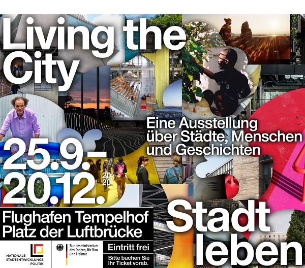 Die Ausstellung Living the City bietet ein vielseitiges Veranstaltungsprogramm an, dass die ganze Stadt zur aktiven Teilnahme einlädt. Während des Eröffnungswochenendes vom 25.–27. September 2020 gibt es im ehemaligen Flughafen Berlin-Tempelhof öffentliche Führungen, Workshops, Performances, Musik, DJs und ein Online-Radio.