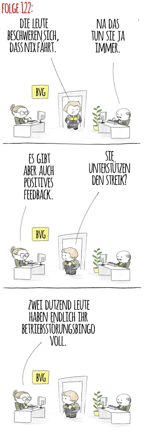 Vorweg noch einmal die wichtigsten vier Worte zum Tage für alle, die zuletzt von der Außenwelt abgeschnitten waren (weil sie zum Beispiel in der Inneren Mongolei oder in der Uckermark waren): Heute streikt die BVG. Busse und Bahnen rollen erst nach 12 Uhr aus den Depots. Es dürfte danach noch eine Weile dauern, bis alle wieder so pünktlich sind wie früher die Eisenbahn. Und, nein, liebe Zugereiste: Die S-Bahn gehört nicht zur BVG. Sie fährt nach Plan. Voraussichtlich. Wobei die Chancen wirklich nicht schlecht stehen. Am Donnerstag verkündete die S-Bahn stolz, dass sie sich eisern an den Fahrplan hält wie schon lange nicht mehr.