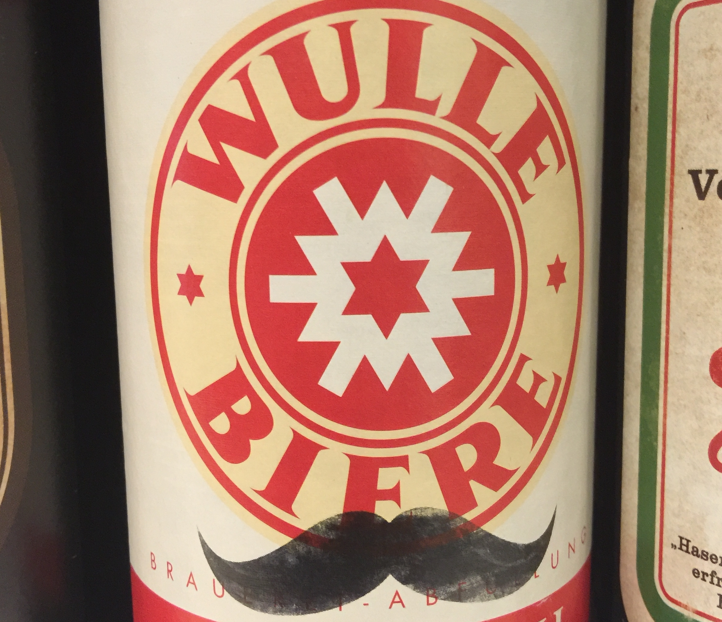 Dem gesuchten Berliner der Woche schmeckt das Wulle-Bier nicht nur - das Logo zeigt auch sein Markenzeichen, das er groß und breit im Gesicht trägt.