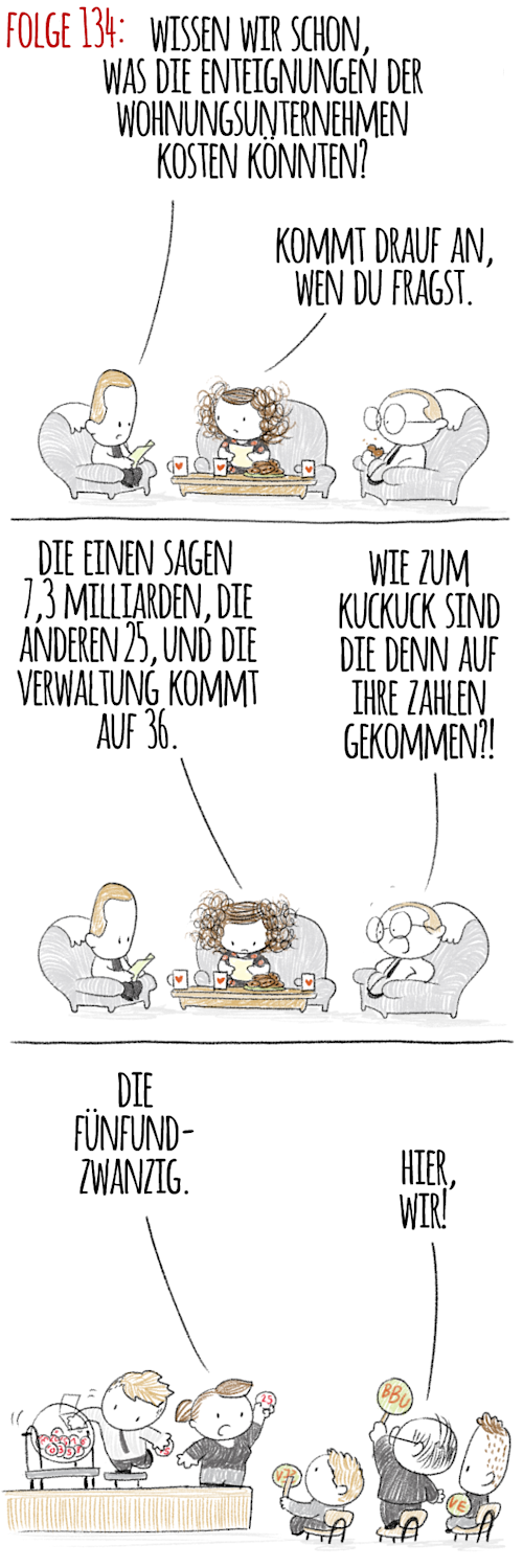 Einen ersten Blick in die senatsinterne „amtliche Kostenschätzung“ zum Volksbegehren „Deutsche Wohnen & Co. enteignen“ haben wir gestern geworfen: Die Entschädigungskosten werden mit 28,8 bis 36 Milliarden Euro beziffert. Den zweiten werfen wir heute hinterher: Knapp 243.000 Wohneinheiten von insgesamt zehn Unternehmen wären von einer Vergesellschaftung betroffen (Grundlage: Eigentümer mit mindestens 3000 Wohnungen). Jährlich müsste Berlin für die Finanzierung der einmaligen Kosten und die Bewirtschaftung der Bestände, „zusätzlich zu den Mieteinnahmen bei unveränderten Bestandsmieten voraussichtlich laufende Mittel in Höhe von 100 bis 340 Millionen Euro“ erbringen. Bereits die einmaligen Kosten wären aufgrund „ihrer besonderen Größenordnung“ aus Fremdmitteln zu finanzieren.