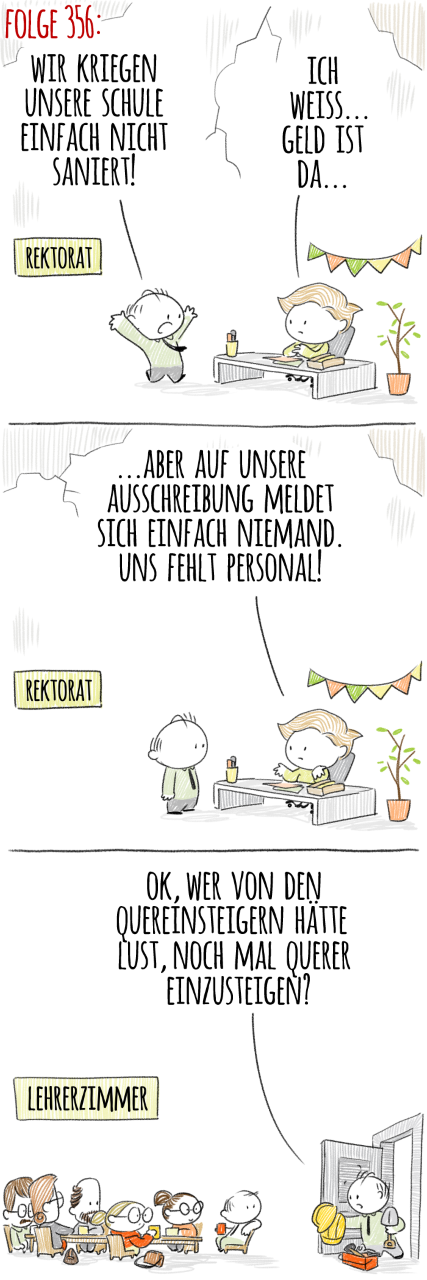 Der Catering-Vertrag für die Schulen läuft aber am 1. August aus, daran ändert auch der Klimawandel nichts. Und da die Dinge in Berlin bekanntlich problemlos klappen (siehe Schuldzuweisungs-Bingo), bleiben da besser noch ein paar (Kartoffel-)Puffer eingeplant, damit nicht alle ab August wieder ihre Stullen mitbringen müssen. Problem: Nahezu alle Bezirke haben das Schulessen jetzt bereits ausgeschrieben, verändern kann man die Ausschreibung offenbar nicht mehr – und noch einmal neu auszuschreiben, würde ziemlich sicher bedeuten: Im Herbst bleibt die Küche kalt. Oder der Mindestlohn bleibt eben, wie er ist (beziehungsweise letztes Jahr war).