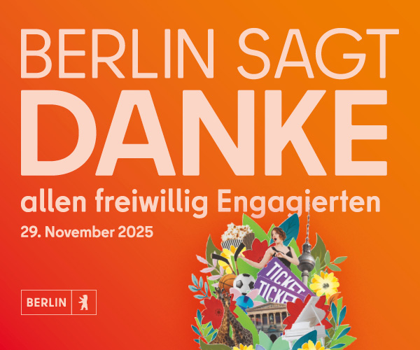 Mit dem Aktionstag „Berlin sagt Danke“ sprechen der Berliner Senat und das Abgeordnetenhaus von Berlin allen freiwillig Engagierten ihren Dank aus. Zahlreiche Kultur- und Freizeiteinrichtungen bieten hierfür Freitickets und Ermäßigungen für Museums-, Theater-, Kino- und Sportveranstaltungen an. Jetzt Dankeschön sichern:
