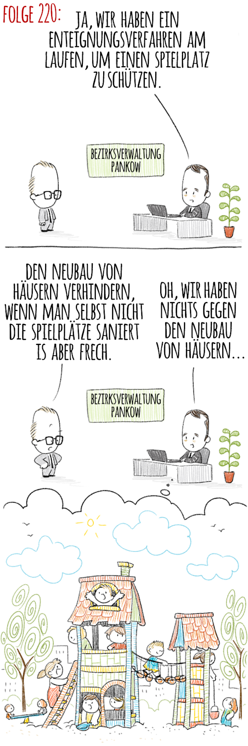 Und falls die Kolleginnen und Kollegen das Ganze noch mal üben wollen: Am Lichtenrader Damm 201 wurde gerade ein Motto-Kinderspielplatz „Polizei“ eröffnet. Es gibt ein Polizeiauto, einen Polizeihubschrauber, ein Polizeiboot und eine Polizeiwache, alles aus Holz. Und über alledem wacht Verkehrspolizist Krause (ebenfalls aus Holz). Na, hoffentlich ist da mal nicht der Wurm drin, also im Holz - und in der Einschreitkonkretisierung.