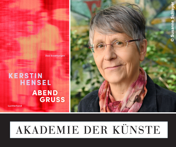 Kerstin Hensel, eine der vielseitigsten Vertreterinnen der Gegenwartsliteratur, liest heute Abend um 19 Uhr aus ihrem soeben erschienenen Buch Abendgruß. Mit der Literaturkritikerin Carola Wiemers spricht sie über Familien- und Lebensgeschichten aus Ost und West, über Spießertum und falsche Moral. Ein poetisches Buch voll hintergründiger Ironie. Tickets hier oder an der Abendkasse am Hanseatenweg, € 7,50 / erm. € 5,-.