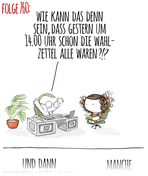 Was wäre eigentlich geschehen, wenn die Wahlbeteiligung höher gewesen wäre – und wenn nicht so viele Menschen (so viele wie nie zuvor) vorab die Möglichkeit zur Briefwahl genutzt hätten? Man mag es sich nicht vorstellen. Warum wurde nicht vorgesorgt für den erwartbaren Umstand, dass die Leute bei einem so umfangreichen Wahlvorgang wie diesmal (nie konnten mehr Stimmen auf einmal abgegeben werden) in den Wahlkabinen etwas länger brauchen würden als sonst?