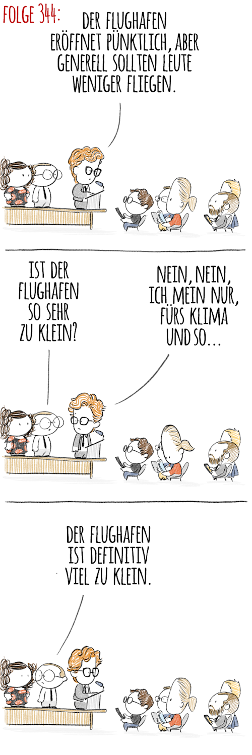 Acht Prozent konnten sich gar nicht entscheiden. Damit geht es ihnen wie den BER-Dübeln, der Rauchgasanlage und der berühmt-berüchtigten Schnittstelle zwischen BER-Hauptterminal und Tiefbahnhof. Die sind sich nun schon seit 2785 Tagen unsicher, ob und wann es endlich losgehen kann. Aber Lorenz Maroldt hatte es ja gestern schon vermeldet: Hurra, Hurra, der TÜV war da!
