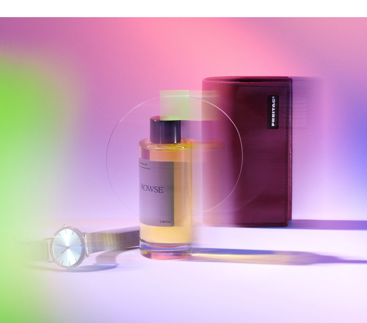 Mit kleinen Dingen, die den Alltag verschönern, kann auch der Berliner Winter strahlen. Ein Spritzer Parfüm von Rowse erhältlich bei Closed, das nachhaltige Portemonnaie von Freitag aus dem Market Lifestore und die glitzernde Uhr von Promobo verbessern selbst den grausten Wintertag.
