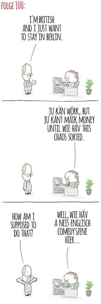 Landsleute begrüßen – 3.600 von ihnen haben schon mal vorsorglich eine Aufenthaltserlaubnis beantragt (Stand Anfang Januar). Und womit die sich hier so beschäftigen können, hat weiter unten unsere wunderbare Naomi Fearn für die „Berliner Schnuppen“ herausbekommen.