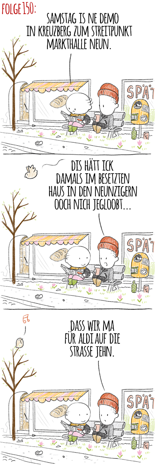 Das gibt’s wohl nur in Berlin: Hier wird nicht nur freitags fürs Klima demonstriert (morgen mit Stargast Greta Thunberg), sondern am kommenden Sonnabend auch für Aldi – siehe Checkpoint von gestern. Der Discounter soll ja seine Filiale in der Kreuzberger Markthalle Neun räumen, weil er nicht zum nachhaltigen Konzept passt. Jetzt hat sich aber auch die Politik nachhaltig eingeschaltet. Die Bezirksverordnetenversammlung Friedrichshain-Kreuzberg sprach sich am Mittwochabend für die Erhaltung des Supermarkts aus, damit die billige Einkaufsmöglichkeit im Kiez erhalten bleibt. Außerdem sollen weitere Gespräche stattfinden, um den Zorn gegen die „Luxus-Fressmeile“ zu kanalisieren. „In welcher Form (runde, Tische, Stehtische, Sitzkreise) ist noch offen“, scherzt Tagesspiegel-Kollegin Corinna von Bodisco in ihrem „Leute“-Newsletter aus Friedrichshain-Aldiberg (erscheint heute neu, zu bestellen hier).