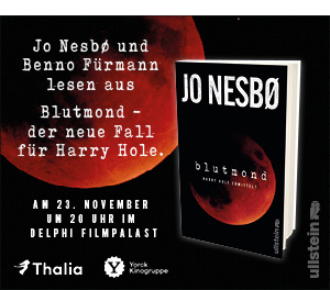 Sichern Sie sich jetzt Tickets für die Buchpremiere von „Blutmond“ in einzigartiger Atmosphäre live in Berlin! Am 23. November um 20 Uhr lesen Bestsellerautor Jo Nesbø und Schauspieler Benno Fürmann im Delphi Filmpalast aus dem neuen Fall für Harry Hole. Es moderiert Anouk Schollähn.