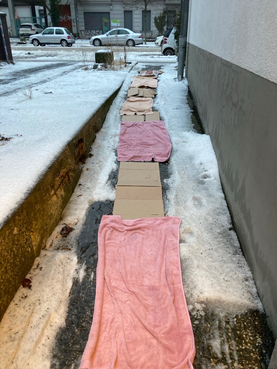 Rote Teppiche gibt's nicht nur auf der Berlinale, sondern (Marke Eigenbau) auch in der Kaiserin-Augusta-Straße in Tempelhof. Eiskalt fotografiert von Checkpoint-Leser Klaus Dethlefsen. Schicken auch Sie uns Ihre schönsten, kuriosesten und überraschendsten Berlin-Momente an checkpoint@tagesspiegel.de und nehmen an unserem Kiekste-Fotowettbewerb in Kooperation mit DASBILD.BERLIN teil.