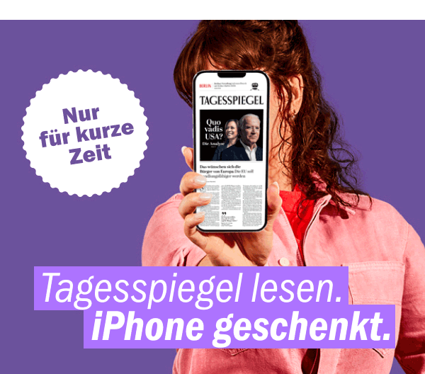 Wir schenken Ihnen das iPhone SE (2022) in Ihrer Wunschfarbe. Lesen Sie den Tagesspiegel als digitale Zeitung für 35,99 € mtl. inkl. Tagesspiegel Plus und dem Checkpoint-Newsletter in der Vollversion. Als Geschenk erhalten Sie das iPhone SE (2022) und sparen bis zu 549 €.