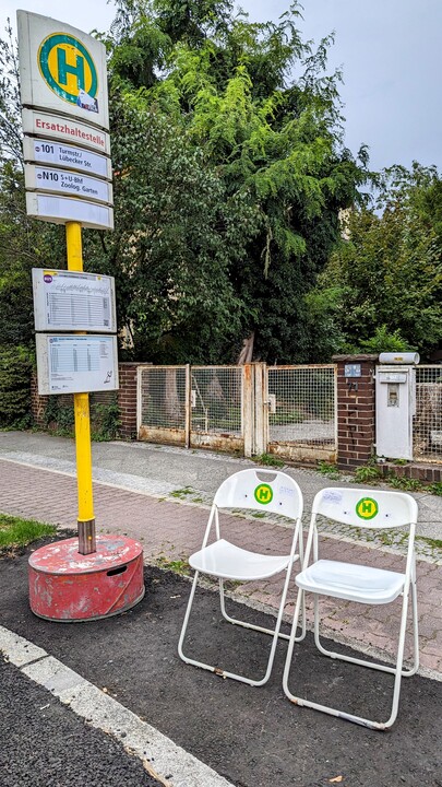 Warten auf den Bus. In Zehlendorf gemütlich privat aufgemöbelt. Dank an Leser Bernd Hübner fürs Entdecken! Mehr mitreis(s)ende Berlin-Bilder gern an: checkpoint@tagesspiegel.de.