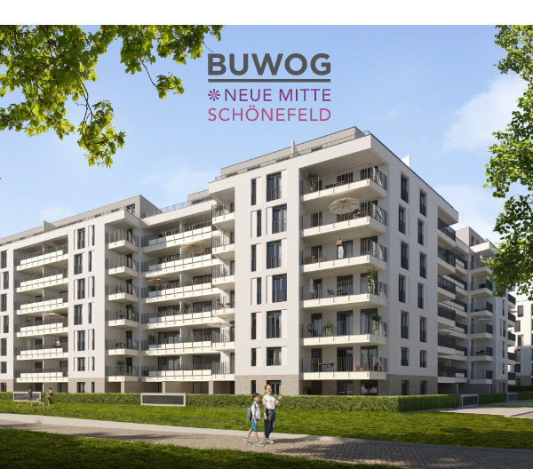 In Schönefeld vor den Toren Berlins und außerhalb der Flugrouten des BER entsteht BUWOG NEUE MITTE SCHÖNEFELD: Eigentumswohnungen mit 2 bis 4 Zimmern, die bereits 2024 bezugsfertig sein werden. Investieren Sie jetzt und profitieren Sie von einem Preisnachlass von mindestens 10.000 Euro auf ausgewählte Wohnungen bei Reservierung bis 31.8.2023 und Beurkundung bis 31.10.2023.